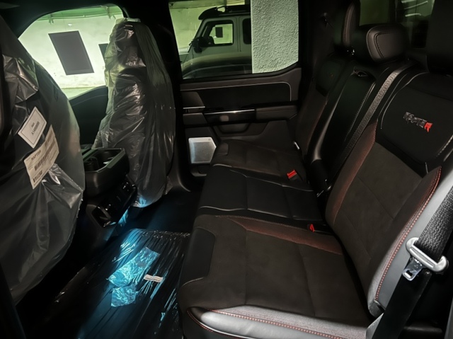 803A)的特点包括:37x12.5R17B5W全地形轮胎(A/T)双气门避震模块化前保险杠黑色Alcantara麂皮和真皮RECARO座椅Raptor R外部主题Raptor R内部主题代号橙色牵引钩Raptor R外部图形Raptor R独特的 带“R”徽章的发动机罩通风孔Raptor R独特的格栅Raptor R独特的17英寸锻造铝制胎圈锁车轮后挡板贴花上的 Raptor“R"徽章取消了2KW车载Pro电源独特的碳纤维贴花车门和仪表板上的代号橙色缝线内部代号橙色Raptor