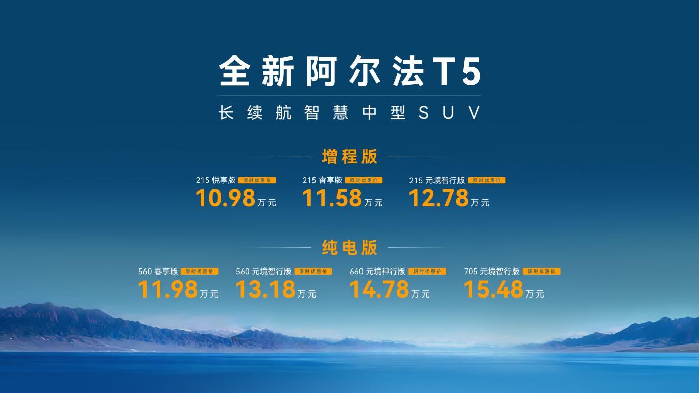 在造型、空间、续航、舒适等方面,全新阿尔法 T5 也进行了全方位升级。造型上,车身线条简约流畅,极智源流日行灯时尚动感,主动进气格栅不仅提升颜值,还实现 0.243Cd 的同级最低风阻系数,新增的瓦纳蓝、熔岩灰外观配色和赤焰棕内饰配色更显质感。