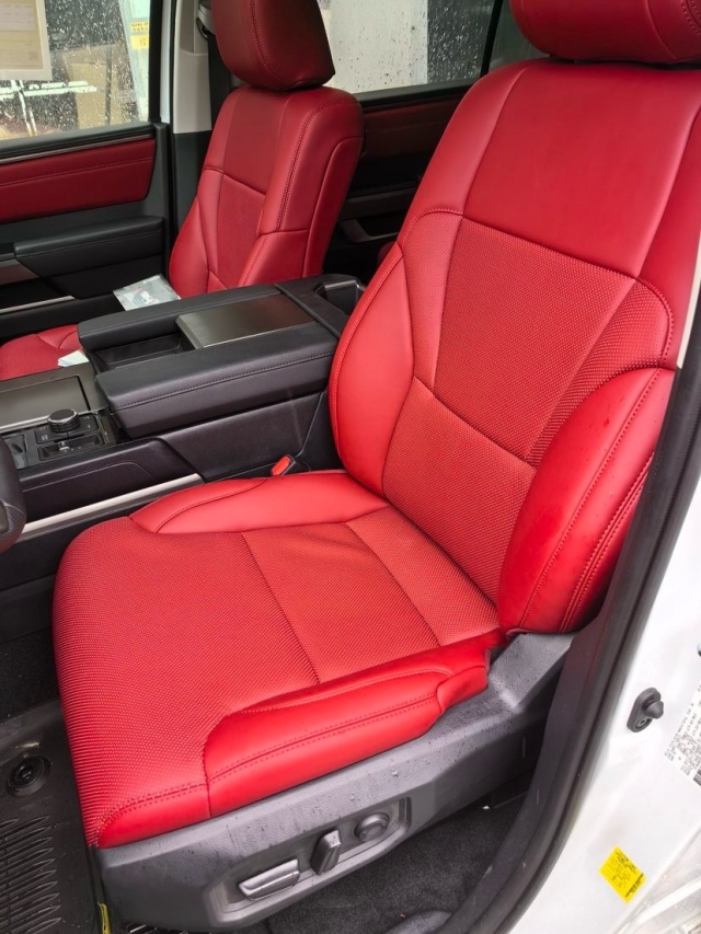 丰田红杉的内饰迎来了全面升级。新车全系告别了此前的 SofTex 合成材质,转而采用质感更优的真皮包裹座椅,触感豪华度大幅提升。细腻的纹路与扎实的填充,让长途乘坐的舒适度显著提升。中控台的棕色胡桃木饰条被灰色胡桃木取代,座椅表面新增专属纹理与 “Capstone” 徽标,低调中透着专属感。此外,新车全系标配第三排座椅电动折叠功能,只需按下按钮,就能轻松切换 7 座 / 储物模式,对于家庭用户或露营爱好者而言,实用性大幅提升。在配置方面,全系新增标配第三排座椅电动折叠功能,提升了使用的便利性。