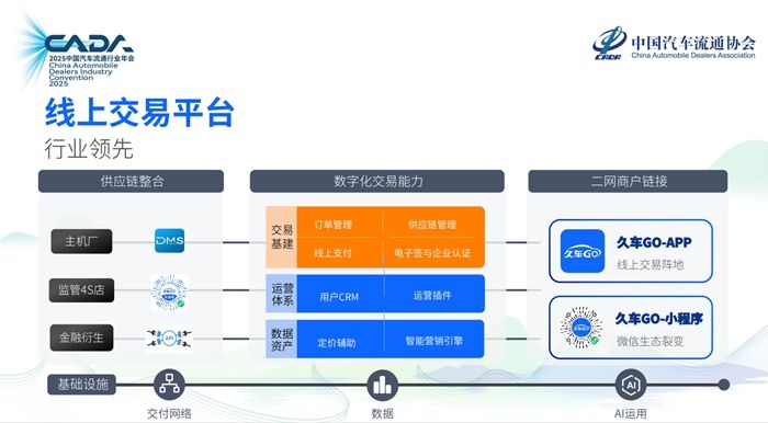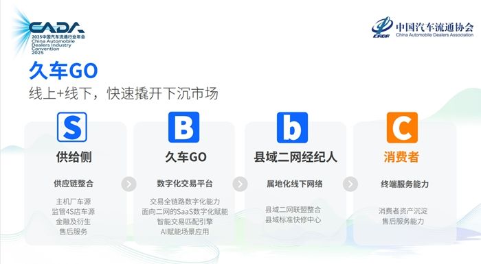 基于此,久车GO提出了以“链接需求、优化生态、数智赋能”为核心的生态战略,致力于重构汽车流通领域的“人、货、场”关系,推动产业形成高效协同的新生态。