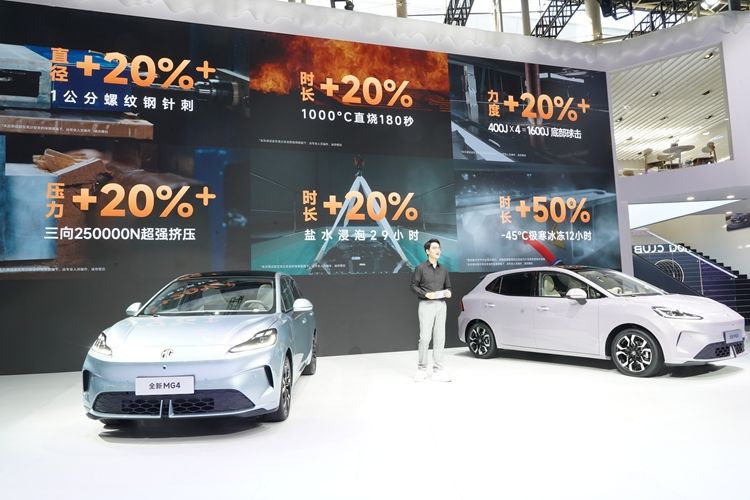 车展期间,上汽名爵MG品牌推出全球首款、也是行业唯一实现量产装车的半固态电池车型——全新MG4半固态安芯版,新车将于12月开启交付。