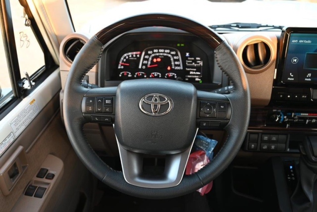 25款丰田LC71柴油版2.8自动挡 为短轴距版本,拥有三门的设计,最直接的竞争对手为路虎卫士(配置|询价)90系列,外观的设计依旧是硬朗经典的风格,中网采用规整的黑色菱形格栅设计,并且内部带有TOYOTA的英文标识,车标位于引擎盖上,并且哎呀了立标的设计,十分独特,头灯的设计也是实用为主的风格,下包围突出的设计充满了硬派的风格。