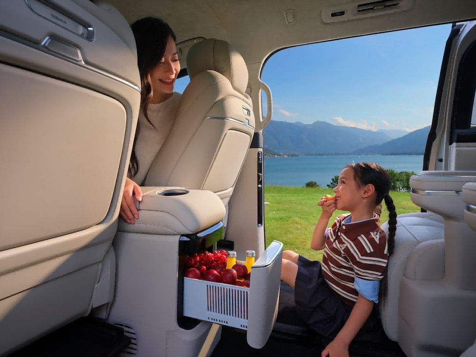 在舒适体验上,吉利银河V900将豪华融入每一个细节。吉利银河V900云感SPA座椅支持加热、通风、记忆及SPA级按摩功能,久坐不累。27扬声器Flyme Sound无界之声系统,配合后排娱乐巨幕,打造沉浸式移动影音厅,告别长途沉闷。此外,-6℃~50℃超宽温域冷暖箱、二排双模小桌板等贴心配置,无论是冷饮保鲜、热汤保温,还是移动办公、亲子学习,皆能轻松应对,舒享满分。