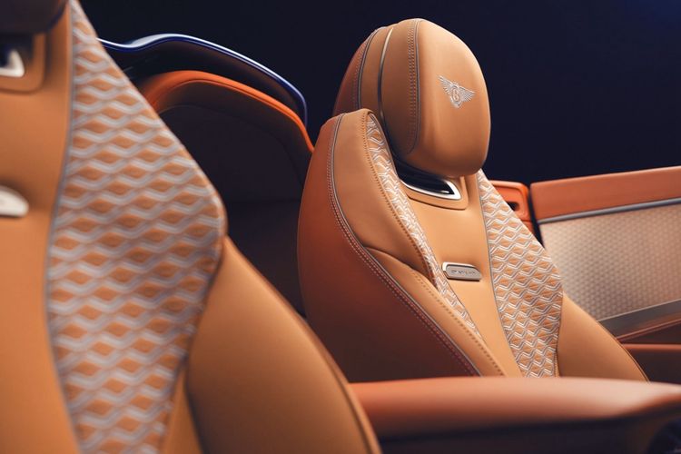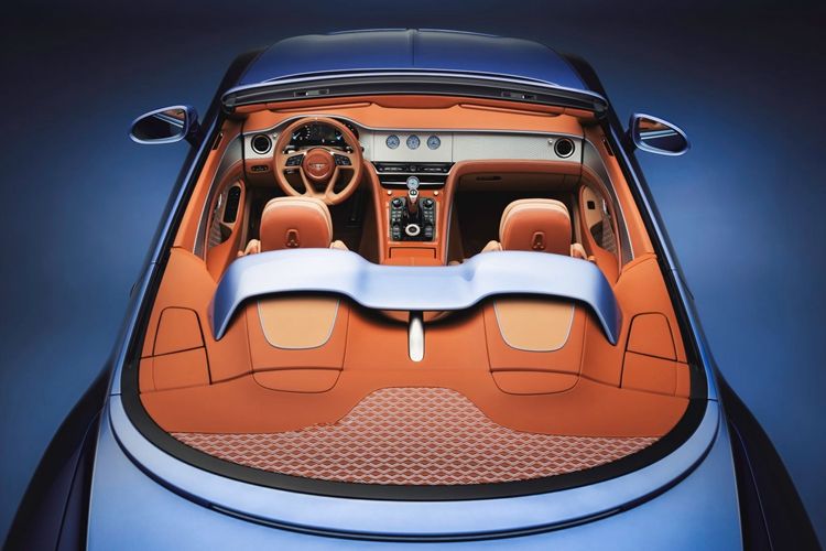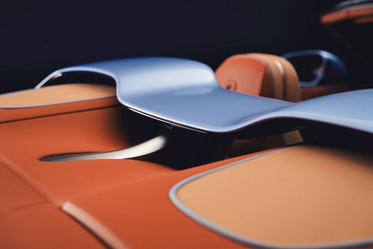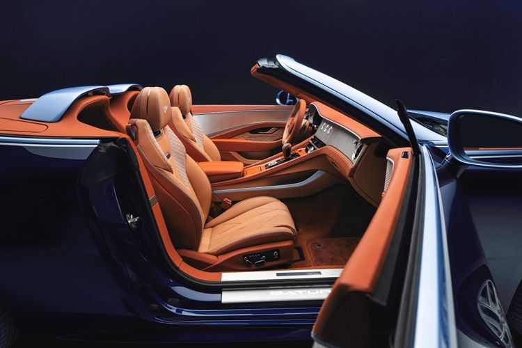 她的定制倾向于奢华美学,采用三色配色方案,包括一条6毫米的亮银色精致饰线,勾勒出Batur的“无界式发动机罩(endless bonnet)”设计轮廓。车身上部的布雷斯洛蓝(BreslowBlue)精准复刻于顶篷颜色之上,成为首款采用专属配色的顶篷。当顶篷收起时,采用同款精致颜色的风桥(Airbridge)便映入眼帘。