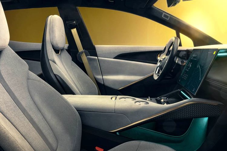 座椅是运动风格,前排12向电动可调,此外还配有腿托、加热、通风和按摩。
