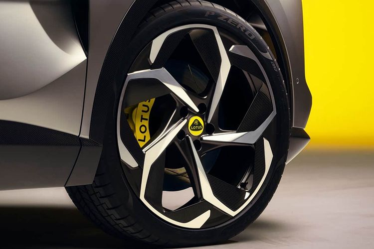 前后制动均为陶瓷通风盘,23英寸碳纤维车轮,轮胎前窄后宽,前胎275/35 R23,后胎315/30 R23,无备胎