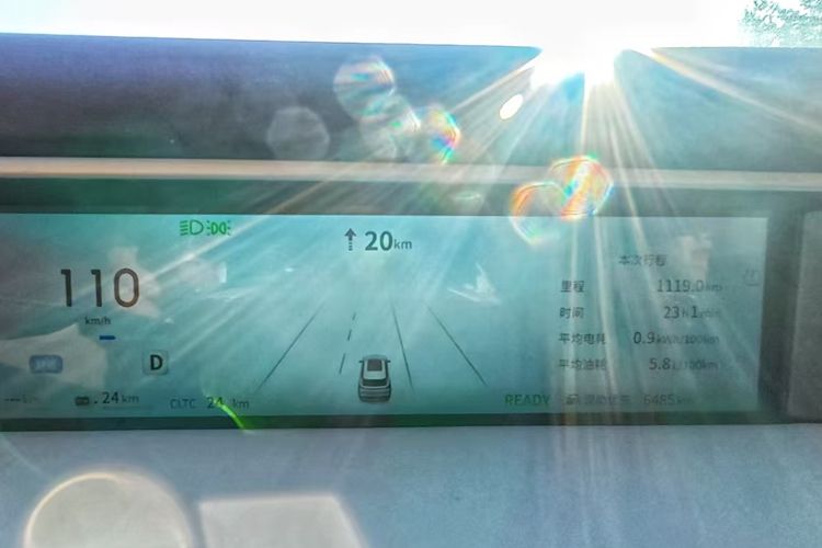 该车动力电池能量30.3千瓦时,油箱容积55升,CLTC纯电续航180公里,CLTC油电综合续航最高1412公里,兼顾纯电通勤的经济性与长途续航的可靠性。本次实测中,电池与油量的能量协同管理,为1119公里的长距离行驶提供保障。
