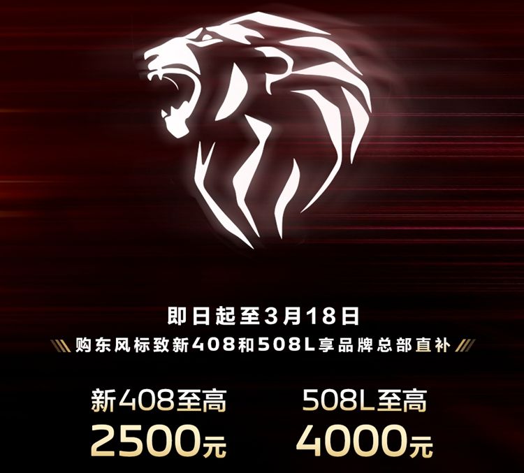 在此丰厚权益之上,东风标致再献重磅诚意:凡在3月18日前购新 408 可享品牌直补至高 2500元,以实实在在的让利,进一步降低购车门槛,让用户以更优预算,轻松坐拥这款实力出众的合资高品质家轿。