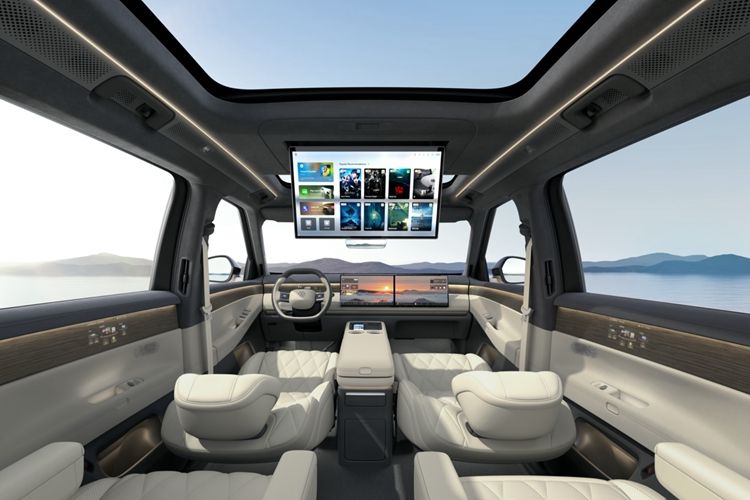 配置方面,15.6英寸超高清中控主副驾双联屏提供高效人机交互,21.4英寸后排可折叠吸顶大屏搭配视角补偿膜,拓展视野,为后排乘员提供很好的视听体验。
