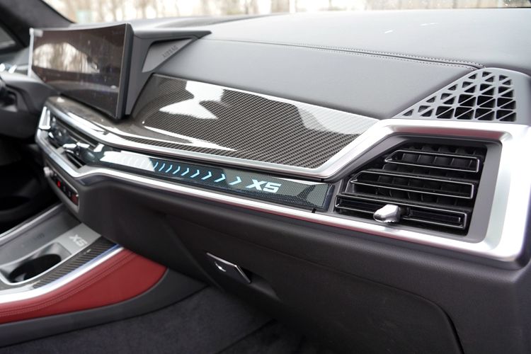 材质方面,由仿皮、亮面饰板、银色饰条组成,显得比较讲究。事实上,晚上的效果更棒,因为有氛围灯。