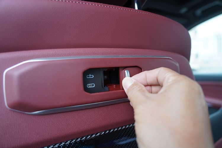 40车型的后排,配有独立空调,空调操作面板上同时配有后椅加热的按键——后排座椅加热是全系标配。购买30车型、但也想要独立空调的话,需另付7600元。