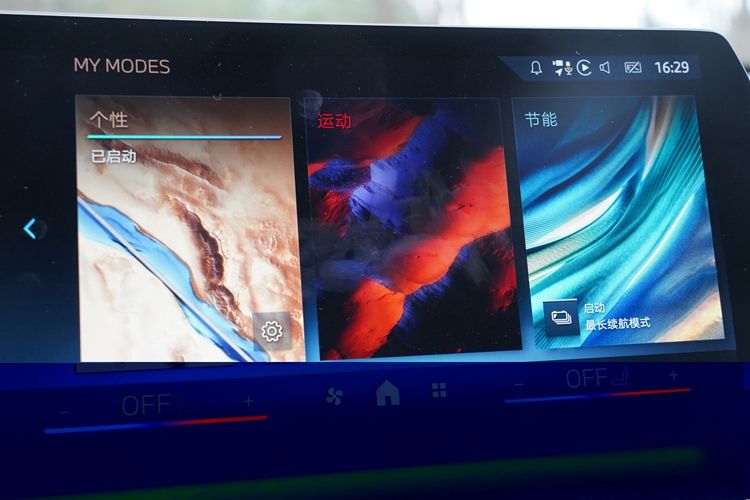 驾驶模式方面,分为运动、经济和自定义。试驾期间,我主要用的是自定义(也就是下图中的个性),感觉动力已经足够强了,方向力度也很合适,用不着再上一层、去用运动模式。