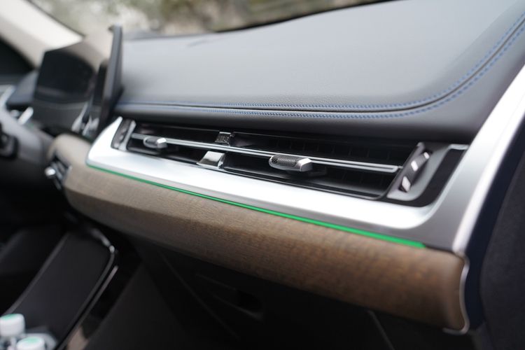 内饰造型与其它宝马大同小异,并无亮点,但我喜欢它的材质——木纹饰板。
