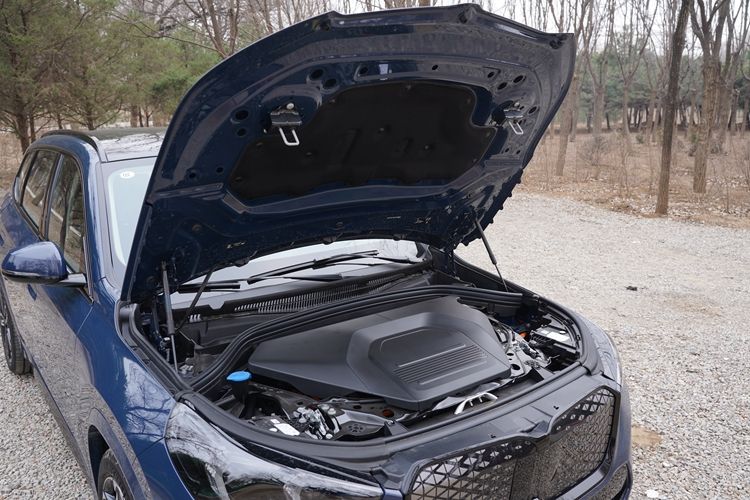 四驱版的电机是前后各一,每台电机最大功率150千瓦,合在一起最大总功率230千瓦,最大总扭矩494牛米。电机采用励磁同步电机,但由于包裹严密,基本上看不见。