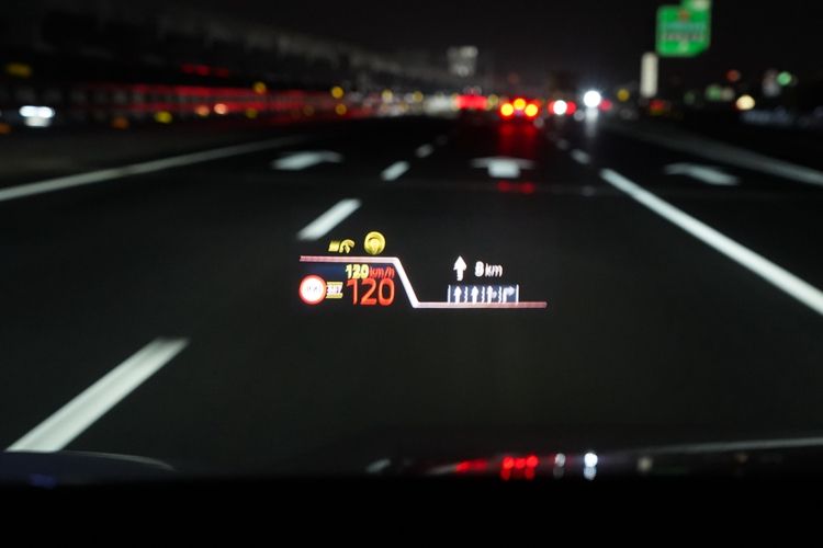 抬头显示也带来了便捷。界面是彩色的,内容包括车速、导航、驾驶辅助等多种信息,驾驶中,基本上用不着低头,光看它就行。
