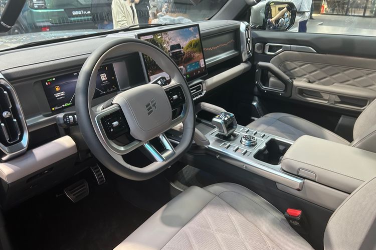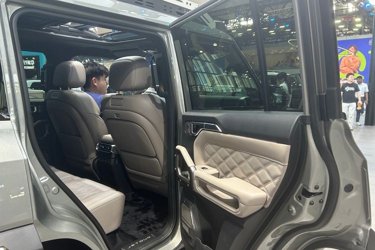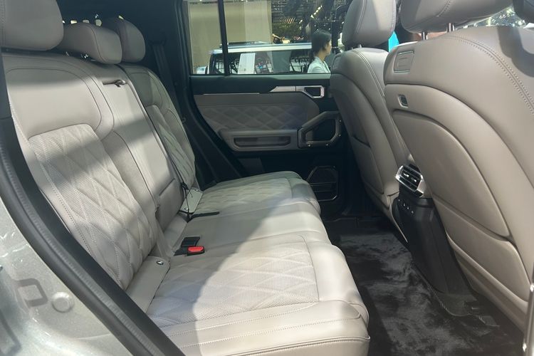 便利配置:驾驶模式(越野)、中央差速器锁、后桥差速锁、蠕行模式、坦克转弯、正驾座椅腰部支撑(4向)、后排座椅加热+靠背调节、后排小桌板、空气净化器、PM2.5过滤、负离子发生器、香氛装置。