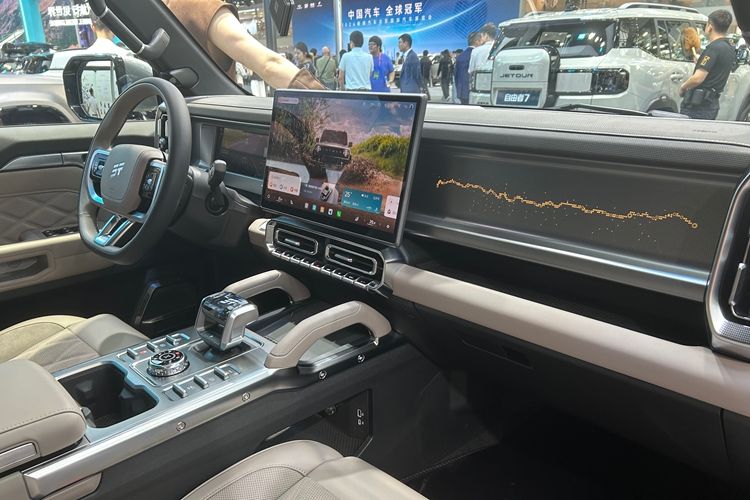 中控屏15.6英寸,车机采用高通骁龙8155芯片,具备4G车联网、OTA升级、车载Wi-Fi、应用商店等功能,内置TOUR OS 3.0智能座舱,可支持科大讯飞星火AI语音大模型。