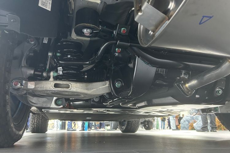 底盘方面,前悬架麦弗逊式,后悬架多连杆式,配备20英寸车轮,轮胎规格255/55R20,小尺寸备胎安置在尾门上。